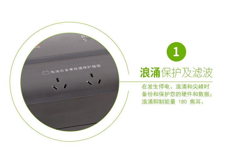電池保護(hù)和電涌插座:為需要UPS備用電池的連接設(shè)備儲(chǔ)備電源容量和運(yùn)行時(shí)間,同時(shí)為太重要的設(shè)備僅提供浪涌保護(hù)。