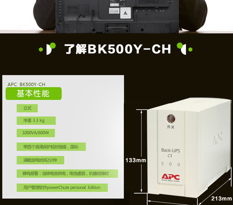 APC BK500Y-CH不間斷UPS電源適用于UPS辦公及家庭計(jì)算機(jī)電源保護(hù)。