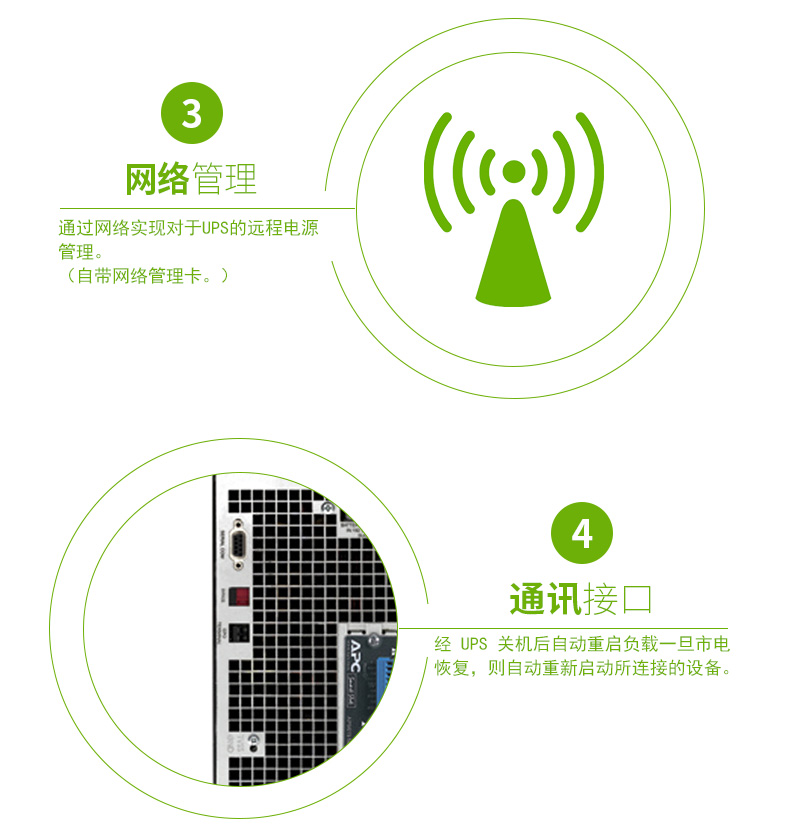 經(jīng) UPS 關(guān)機后自動重啟負(fù)載:一旦市電恢復(fù),則自動重新啟動所連接的設(shè)備。