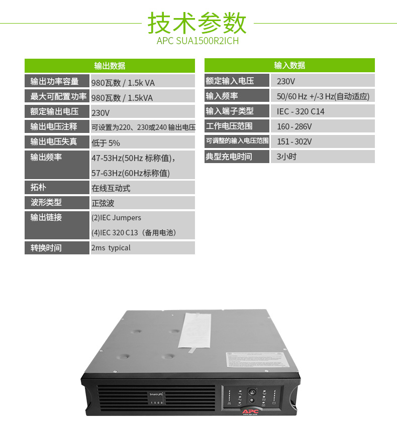 APC SUA1500R2ICH不間斷UPS電源適用于UPS辦公及家庭計(jì)算機(jī)電源保護(hù)。