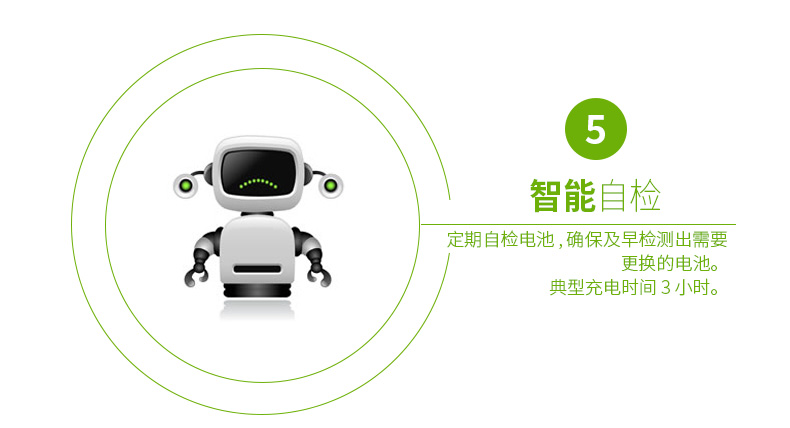 自動自檢:定期自檢電池,確保及早檢測出需要更換的電池。