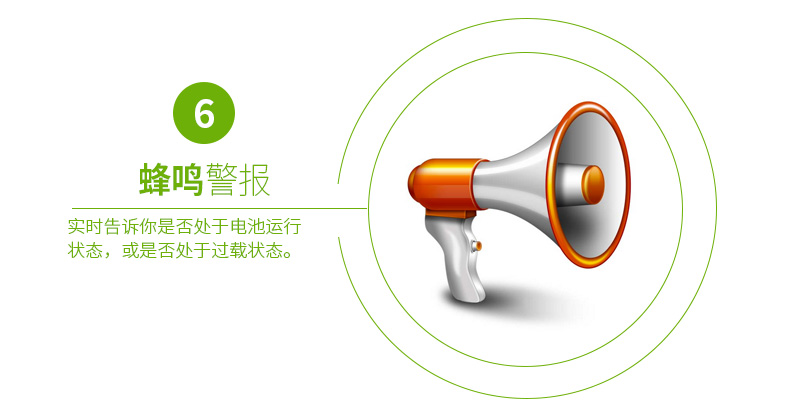 有聲報警:實(shí)時告訴你系統(tǒng)是否處于電池運(yùn)行狀態(tài),電池電壓是否低,或是否處于過載狀態(tài)。