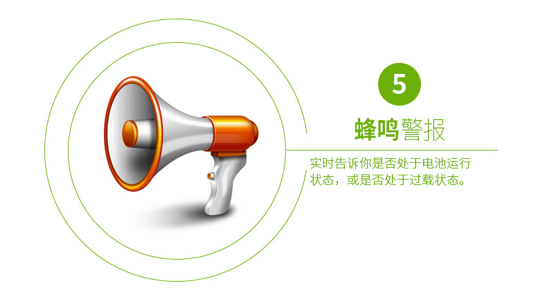 有聲報警:實時告訴你系統(tǒng)是否處于電池運行狀態(tài),電池電壓是否低,或是否處于過載狀態(tài)。