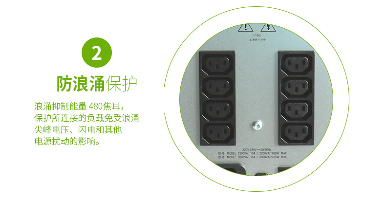 | 浪涌能量額定值 | 480焦耳 | 控制盤(pán) | 發(fā)光二極管顯示在線運(yùn)行,電池運(yùn)行,過(guò)載和電池需要更換 |