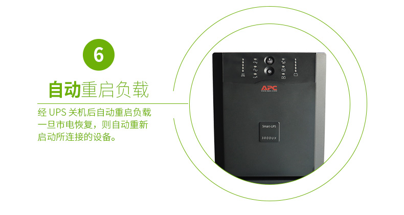 經(jīng)UPS關(guān)機(jī)后自動(dòng)重啟負(fù)載:一旦市電恢復(fù),則自動(dòng)重新啟動(dòng)所連接的設(shè)備。