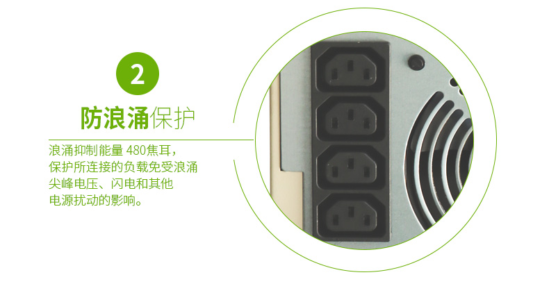 | 浪涌能量額定值 | 480焦耳 | 控制盤 | 發(fā)光二極管顯示在線運(yùn)行,電池運(yùn)行,過載和電池需要更換 |