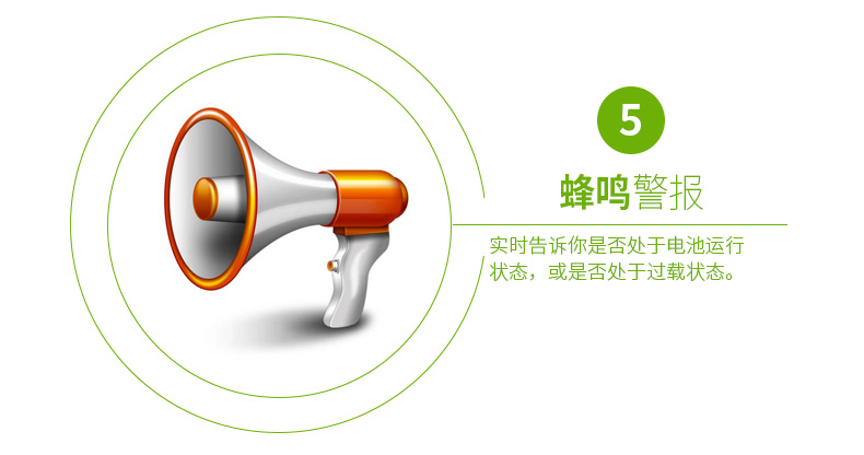有聲報(bào)警:實(shí)時(shí)告訴你系統(tǒng)是否處于電池運(yùn)行狀態(tài),電池電壓是否低,或是否處于過載狀態(tài)。