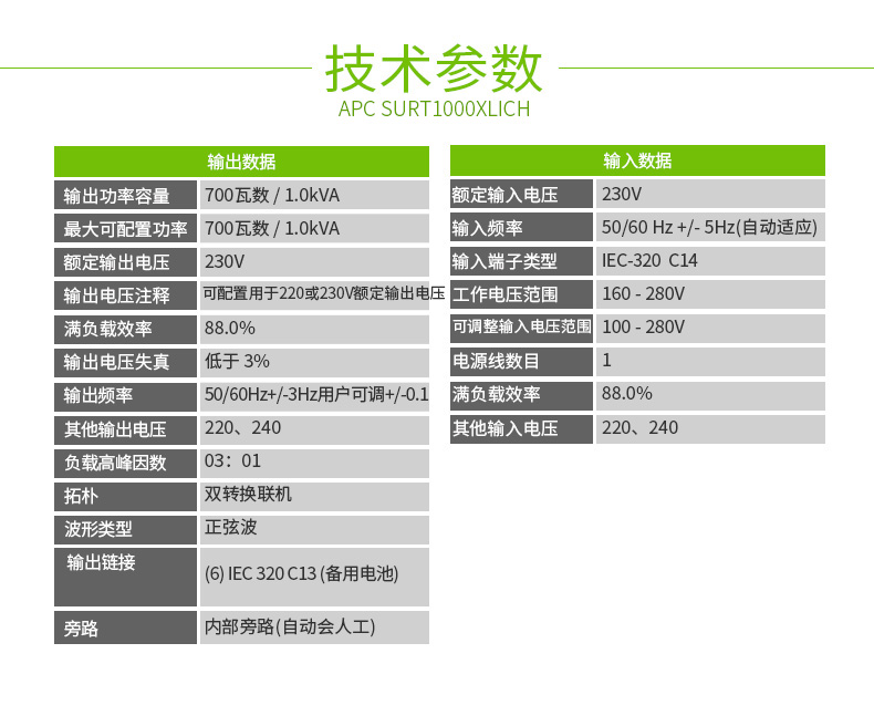 施耐德APC SURT1000XLICH 在線式UPS不間斷電源/700W/1000VA 標(biāo)機(jī)帶電池
