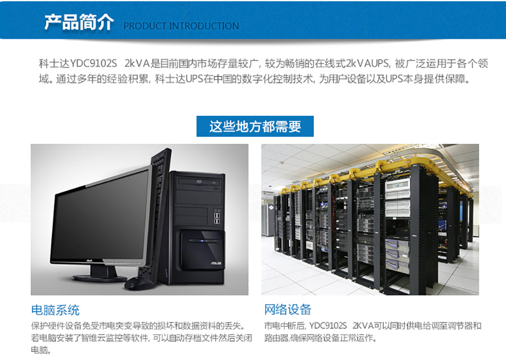 科士達(dá)kstar YDC9102S/H-RT 在線式UPS不間斷電源適用范圍: