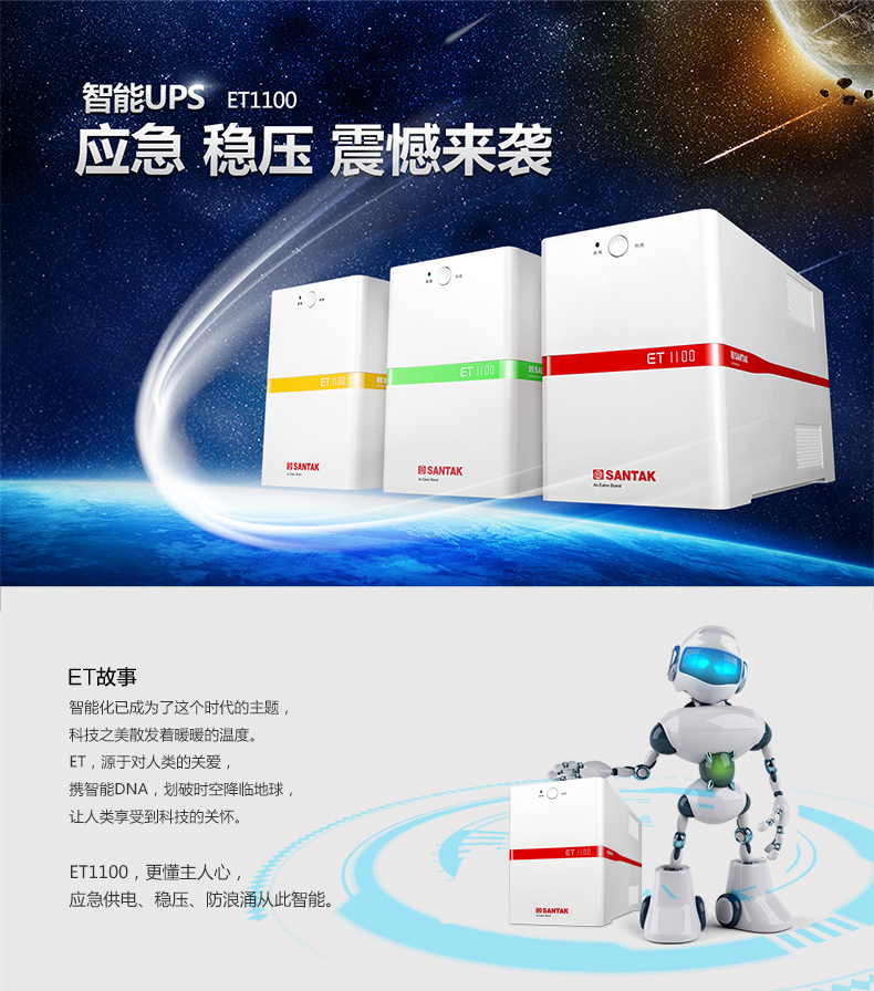 山特ET1100 UPS是針對(duì)中國(guó)電力環(huán)境設(shè)計(jì)的自動(dòng)穩(wěn)壓型智能UPS,內(nèi)置先進(jìn)的MCU控制單元,有效的解決5 種電力問題:市電斷電、電壓下陷、浪涌、欠壓、過壓。功能強(qiáng)大,美觀時(shí)尚,是電腦、POS機(jī)、收銀臺(tái)、ATM、路由器、閘機(jī)等設(shè)備的最佳保護(hù)。