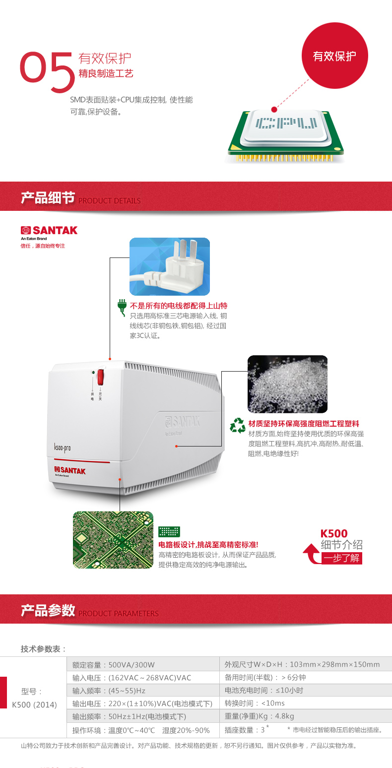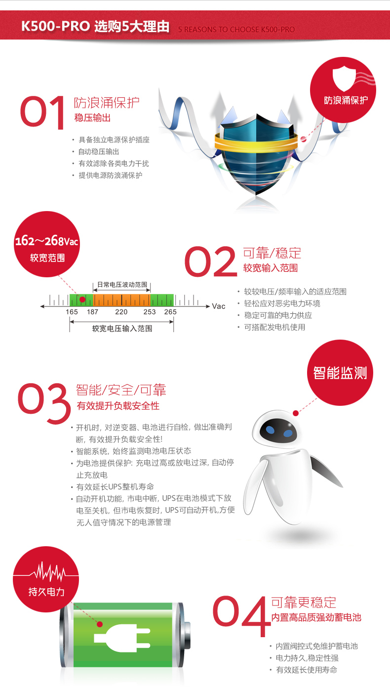 山特K500 PRO 是針對(duì)中國市場(chǎng)電力環(huán)境優(yōu)化設(shè)計(jì)的自動(dòng)穩(wěn)壓型UPS,通過先進(jìn)MCU控制及可靠功率設(shè)計(jì),有效的解決5種電力問題(市電斷電、電壓下陷、浪涌、欠壓、過壓),同時(shí)進(jìn)一步提高了產(chǎn)品的適應(yīng)性和可靠性,為用戶設(shè)備以及UPS本身 提供萬無一失的保障。