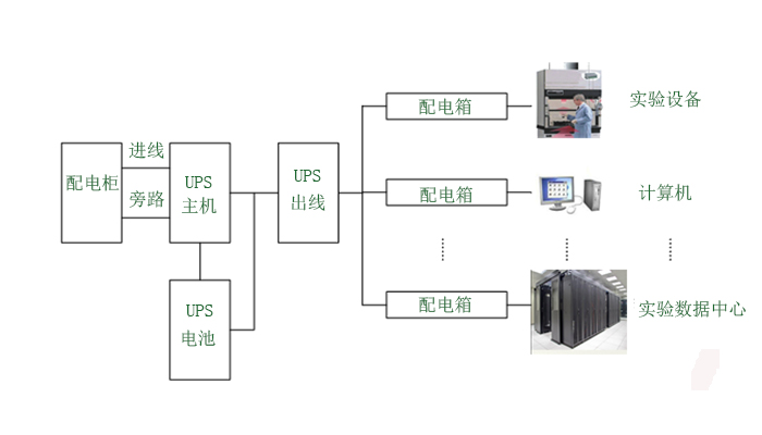 實驗室含有各種類型的負(fù)載設(shè)備,即包含電腦這樣的普通負(fù)載,還有感性負(fù)載、容性負(fù)載等,不僅有單相供電的設(shè)備還有三相供電的設(shè)備,而且對UPS輸出電源的精度及可靠性要求較高。因此推薦使用工業(yè)型UPS產(chǎn)品,輸出帶隔離變壓器,不僅保障供電的純凈,也保障UPS自自不易損壞。